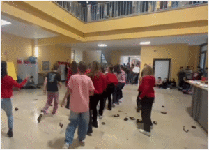 - un flash mob che la classe 3^G ha presentato a tutti gli alunni della scuola sulle note della canzone Break the Chain cantata dalla prof.ssa Avancini Martina.