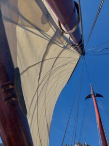 Siamo partiti e siamo andati verso Riva del Garda osservando curiosi il paesaggio che ci circondava. Nel mentre avevamo raggiunto la giusta velocità per spegnere il motore e muoverci soltanto con la forza del vento (abbiamo contribuito all’issaggio delle vele ed a legare le corde).